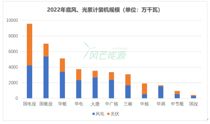 在國(guó)有資本的帶動(dòng)下,截至2022年底,風(fēng)、光裝機(jī)容量已高達(dá)7.6億千瓦,兩年時(shí)間新增裝機(jī)超過(guò)2.3億千瓦。按照這樣的節(jié)奏,將提前多年完成2030年風(fēng)、光裝機(jī)超過(guò)12億千瓦的總體目標(biāo)。